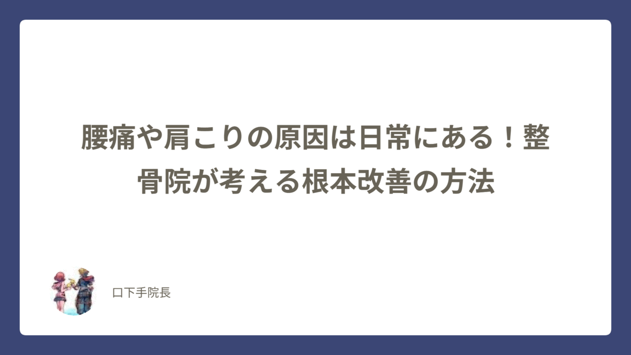 腰痛や肩こりの原因は日常にある!整骨院が考える根本改善の方法